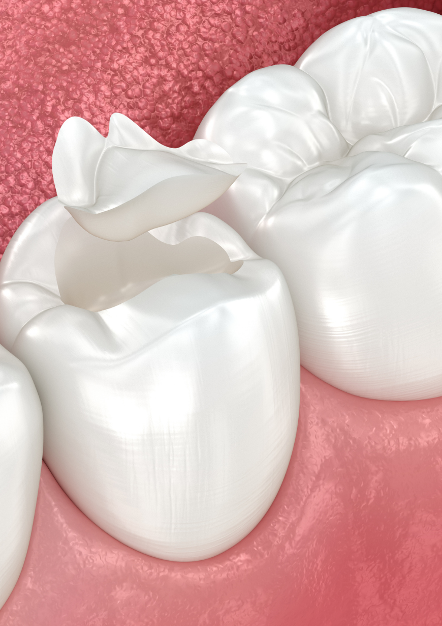 Yeni teknolojiler sayesinde, geniş çürük veya harabiyet olan dişlerde kompozit materyal yerine seramik malzeme kullanarak daha uzun ömürlü ve dayanıklı restorasyonlar yapmaktayız. Inley ve onley dolgular, adeta bir puzzle gibi dişin üzerine yerleşerek hasarlı dokunun yerine geçer ve doğal diş dokusunu tamamlar.
